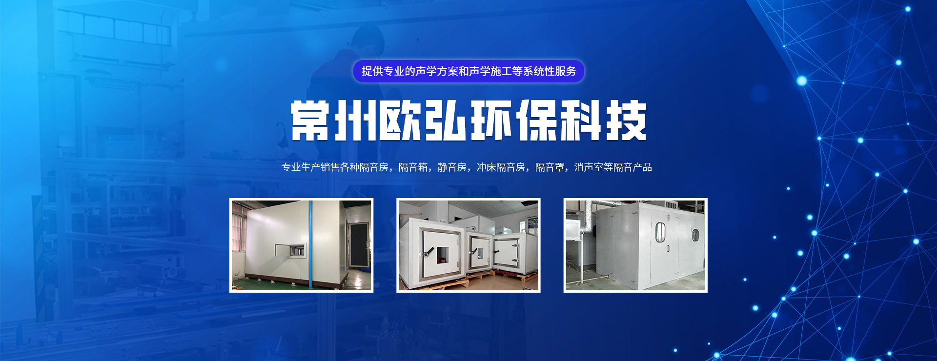 常州歐弘環保科技有限公司是一家專注噪聲治理的企業,公司專注生產銷售各種隔音房,隔音箱,靜音房,沖床隔音房,隔音罩,消聲室等隔音產品??蛻艉w汽車、家電、醫療、健身器械等眾多行業。  我公司專注于為客戶提供聲環境深度檢測;聲學方案研究、設計;聲學產品研發、優選;聲學施工與驗收的一整套聲學系統解決方案,是國內成熟的聲學行業系統服務公司?! ∥覀兊姆疹I域:致力于研究并開發高性能、高性價